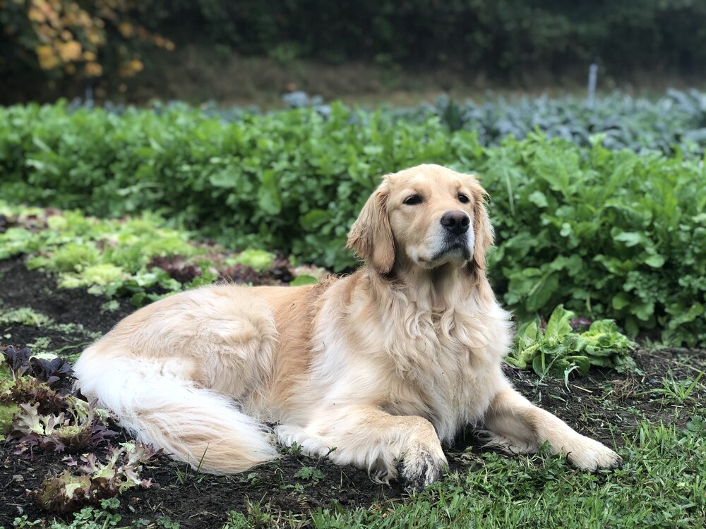 While not always the best for productivity, we can’t imagine our days on the farm without Willy’s radiating warm energy. She has some important farm duties like enthusiastically greeting any visitors, chasing away rabbits and eating all the reject carrots, radishes, turnips, cucumbers, and snap peas that get left in the field. When she’s not patrolling or napping on the farm, Willy loves fetching sticks in the Pilchuck river and going to any off leash area where she can free-range with other furry friends.